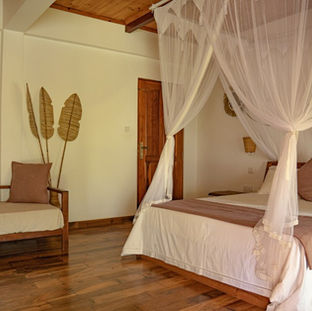 Each double bed is elegantly draped with stylish mosquito netting, offering both charm and peace of mind for a perfectly restful night.
